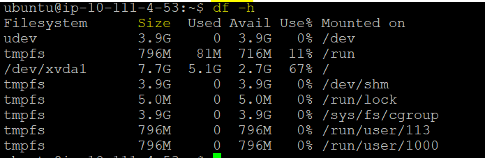 - To see all disk space available on all the mounted file systems on ubuntu machine in human readable format.
