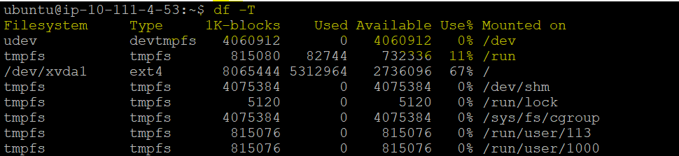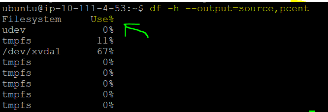 - You will notice a difference in this command output and a previous. The difference is instead of 1k-blocks you will see size which is human readable.