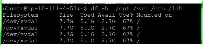 - To see all disk space available on all the mounted file systems on ubuntu machine.
