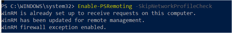 Enable-PSRemoting -SkipNetworkProfileCheck
