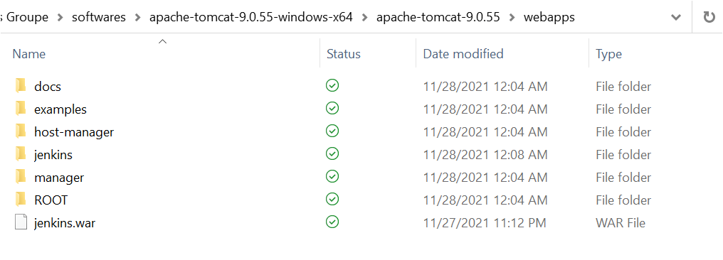 1. Next, unzip the tomcat installation folder and copy the jenkin.war file in the webapps folder.