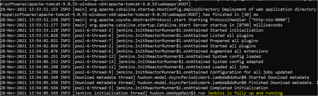 1. Finally you will notice that Apache Tomcat has started and Jenkins as well.