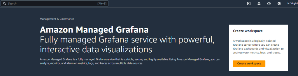 In this section you will create Amazon Managed Grafana workspace and then connect to the Grafana console in that workspace.