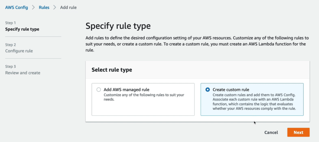 - Some rules can be evaluated or triggered whenever a configuration is going to change. So whenever, for example, you have a new configuration of your EBS disc, please evaluate the type of your EBS disk, or you can also have the rule to be evaluated at regular time intervals.