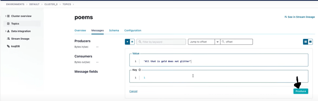 Producing an message in Apache kafka topic in Confluent Cloud console