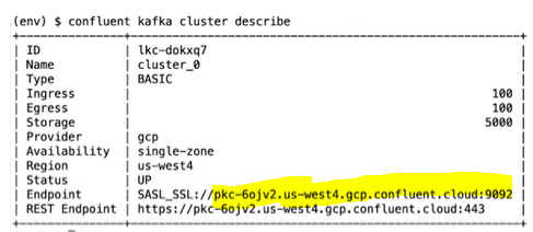 confluent api-key use <api-key> --resource cluster-id # set the specific api keys for the cluster