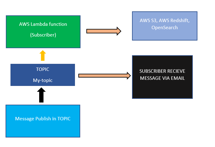 Publishers send the message to the topic and later clients can subscribe to the messages using an endpoint such as Amazon kinesis data firehose, Amazon SQS, AWS Lambda, HTTP, mobile push notifications, and mobile text messages (SMS).