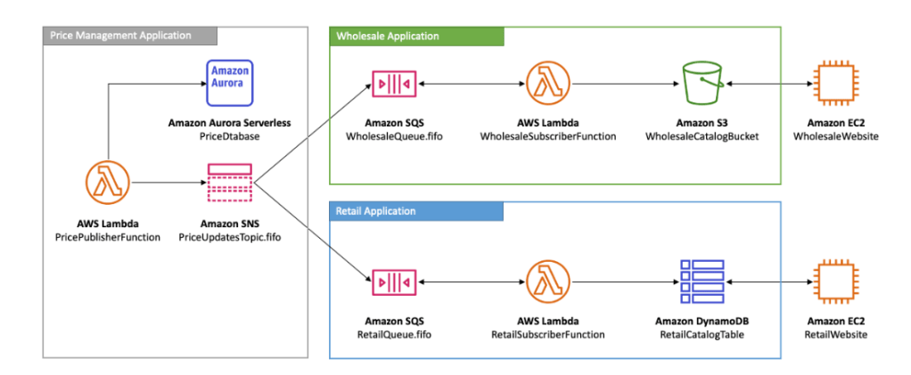 Application that publishes a message to an SNS topic whenever an order is placed for a product. Then, SQS queues that are subscribed to the SNS topic receive identical notifications for the new order. An Amazon Elastic Compute Cloud (Amazon EC2) server instance attached to one of the SQS queues can handle the processing or fulfilment of the order.