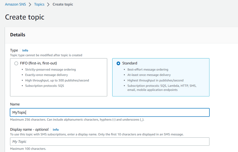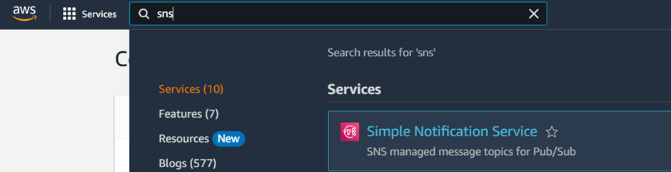 In this section we will go through step by step on how to create a AWS SNS Topic.
