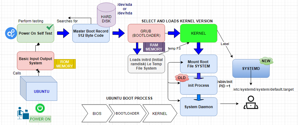 - Finally Kernel Initialize /sbin/init program ( which is legacy Process) or Kernel Initialize systemd program ( Latest)
