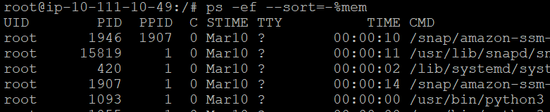ps -ef --sort=-%mem